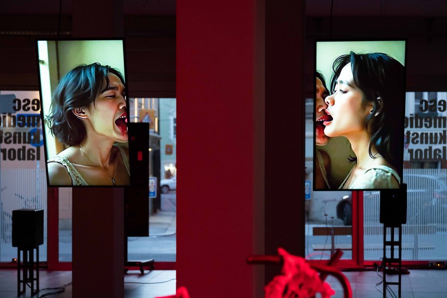 Das „Körperobjekt“ ist umgeben von KI-generierten Videos von anthropomorphen Körpern, deren Auflösung sich ändert. Dabei wurden bei der Generierung Textvorgaben wie „Orient“, „Asien“, „westlicher Blick“ und „Transvestit“ verwendet. Entsprechend klischeehaft erscheinen sie weichgezeichnet, wandeln aber zwischen Zärtlichkeit und blutiger Realität, als Abbild eines unbestimmten Subjekts, das viele Identitäten in sich vereinigt, aber keine davon in seinem Kampf einnimmt oder vereinnahmt. Die Entscheidung zwischen männlich und weiblich und „Osten“ und „Westen“ wird dabei bewusst aus der menschlichen Hand gegeben, um so den von der Herkunft abhängigen kulturellen Blick von außen auszublenden. Die Langsamkeit, in der sich die Änderungen vollziehen, und die schöne, wenn auch grausame Ästhetik eines perfekt gezeichneten Körpers stellen einen Kontrapunkt zum mechanischen Objekt dar, auch wenn sich diese Vollkommenheit immer wieder durch den Wechsel auf eine geringere Auflösung selbst hinterfragt. Einer der Bildschirme ist auch als Schaufensterinstallation nach außen geneigt und daher ständig auch abseits der Öffnungszeiten sichtbar.