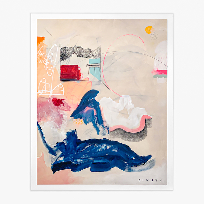 Georg Dinstl bezeichnet sich selbst als Autodidakt, der immer schon drauflos gemalt hat. Zuerst in der elterlichen Garage und später auf der Straße. „Skateboarden, Street-Art, Musik, das hat damals alles zusammengehört, wir haben es einfach gemacht.“ 2000 absolvierte er einen Lehrgang für Mediendesign. Für seine Band Antimaniax, mit der er bis 2005 durch ganz Europa tourte, schrieb er die Songtexte und entwarf Plattencover und T-Shirts für das Merchandising. Mit der Agentur Permanent Unit, die klassische Werbearbeit mit Kunst verbinden sollte, versah er mit Josef Wurm, Simon Lemmerer und Oliver Tomann Festivals und Events mit Street-Art. Später erledigte er Siebdruck, Posterproduktion und Raumgestaltung mit seinem Kollektiv „Das Voyeur“. Er gestaltete ein Wandgemälde für den steirischen herbst 2007, malte auf der Expo 2015 in Mailand, stellte am Kunstfestival Lendwirbel, dem Forum Stadtpark, dem Rostfest in Eisenerz und der Kombüse aus. Überall dort war er anzutreffen, wo es brodelt, sich bewegt und zischt, wo sich Subkultur, Aktivismus, Design und alternativer Lebensstil miteinander verbinden. Georg Dinstl ist nicht im Elfenbeinturm daheim, er verstand seine Kunst immer als Arbeit, bei der man sich auch schmutzig machen kann, bei der man schwitzt und mit der man nicht zuletzt Geld verdienen muss. Irgendwann machte sich aber der Wunsch nach mehr Ruhe und Zeit mit sich selbst in der Werkstatt bemerkbar. 2013 schrieb er sich in die Meisterklasse für Malerei in der Ortweinschule bei Erwin Talker ein, die er 2015 abschloss. Ausstellungen in Wien, Mexiko, Mailand und Budapest folgten. Seit 2017 kann er als freischaffender Künstler von seinen Arbeiten leben. „Es reicht für Butter, Brot und Bier“, lacht Dinstl.