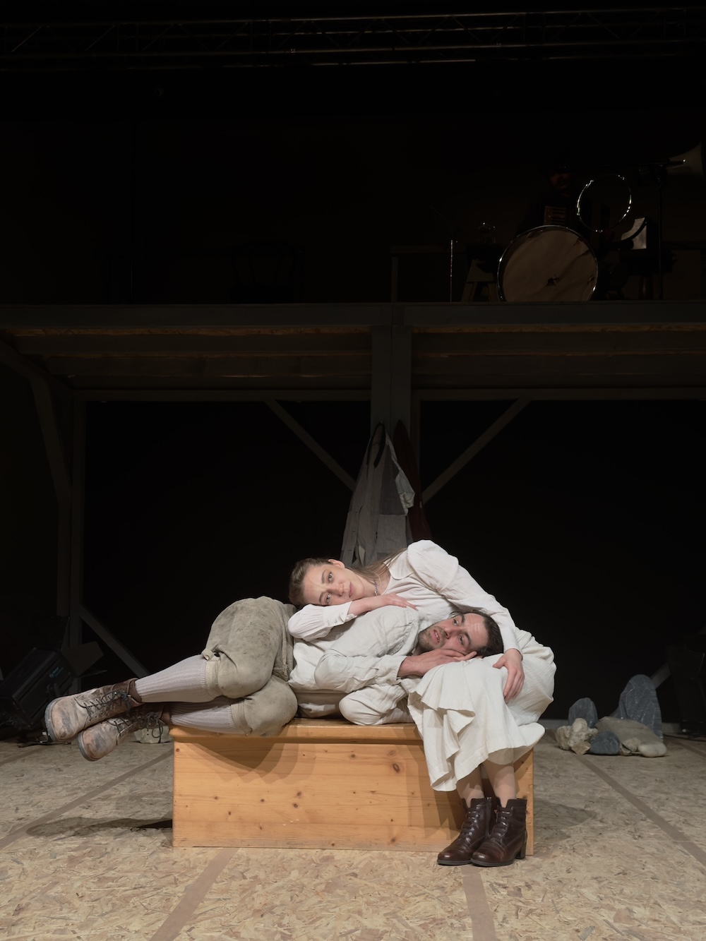 Selina Heindl als Aloisia und Kilian Klapper als Rudolf gestalten diese sich zart und etwas holprig anbahnende Beziehung mit großer Nuanciertheit und Genauigkeit. Das Stück verfolgt weniger dramatische Wendungen als vielmehr ein langsames, vorsichtiges Zusammenwachsen zweier Menschen, deren Leben stark von Arbeit, Verantwortung und den Nachwirkungen des Krieges geprägt ist. Beide tragen dabei ihr eigenes Geheimnis mit sich – Erfahrungen, über die lange nicht gesprochen wird und die immer wieder als leiser innerer Konflikt spürbar bleiben.